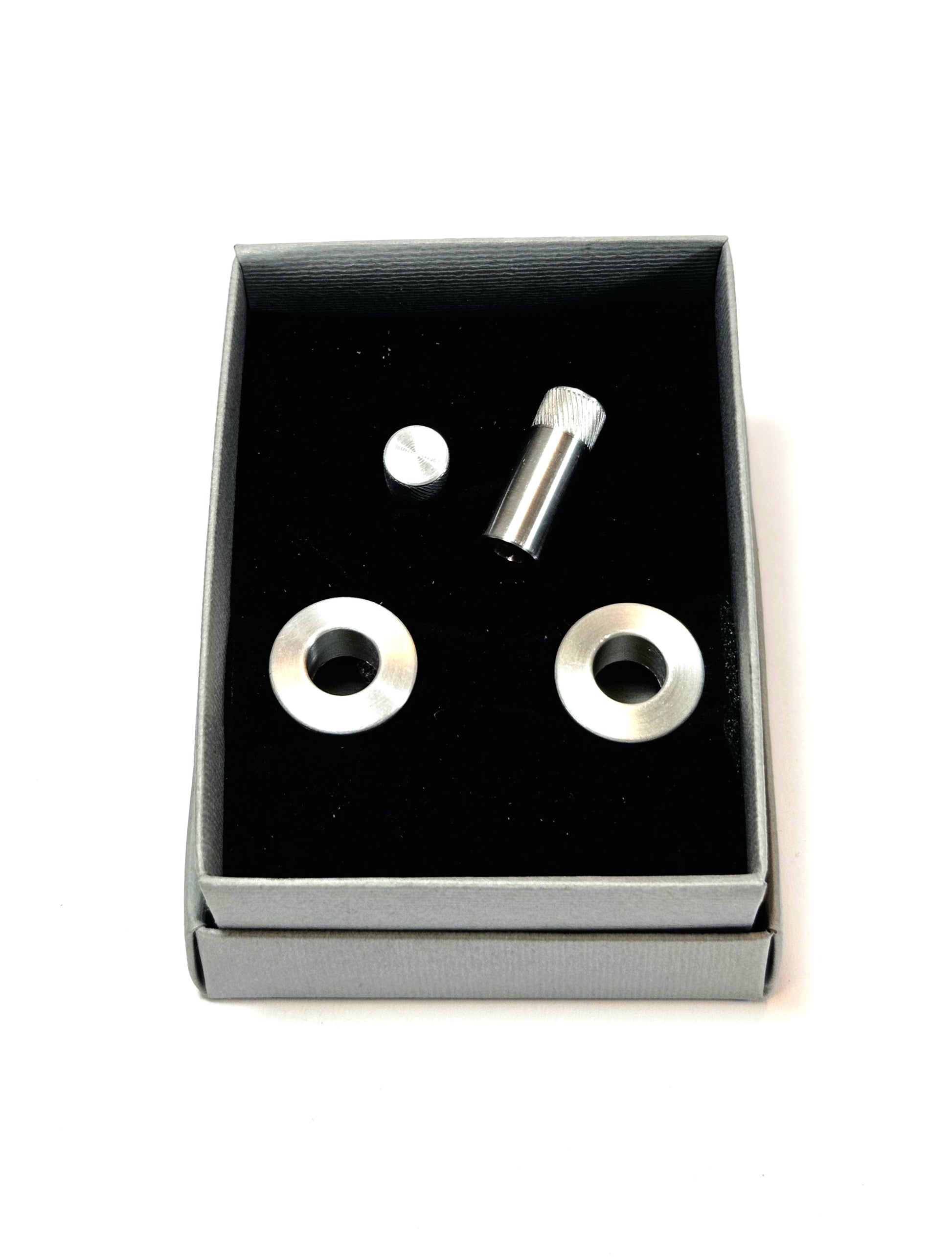 Klasik Porsche 911 (1977–1988) modelleri için özel olarak üretilmiş kapı kilit halkası ve pim takımı. Alüminyum malzemeden, torna tezgâhında tek tek işlenerek hazırlanmıştır.