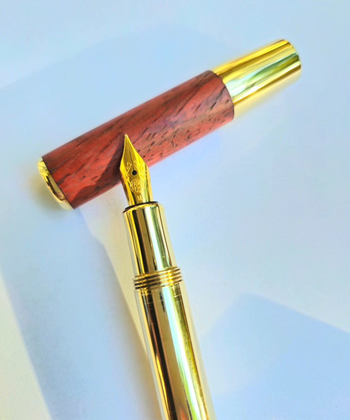 Kalemin kapak kısmında, pirinç üzerine Güney Afrika kökenli egzotik padauk ağacı kullanılmıştır. Bu nadir ve özel ağaç, kaleme eşsiz bir şıklık ve zarafet katarken, doğal dokusu , renk tonları ve hoş kokusuyla dikkat çeker. Padauk ağacının kırmızıya çalan rengi, pirinçle şık bir kontrast oluşturur ve estetik açıdan oldukça dikkat çekicidir.